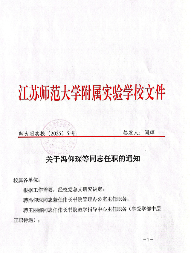 关于冯仰琛等同志任职的通知