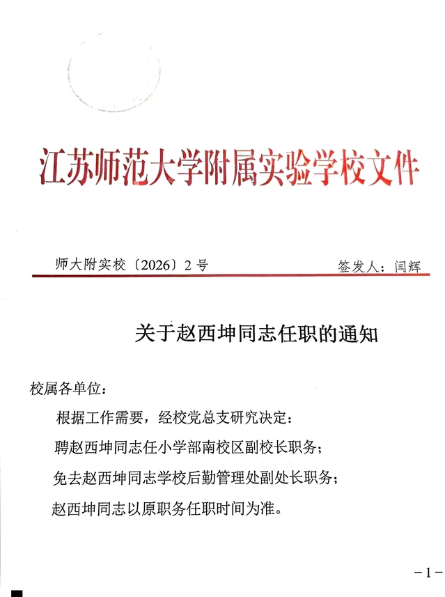 关于赵西坤同志任职的通知