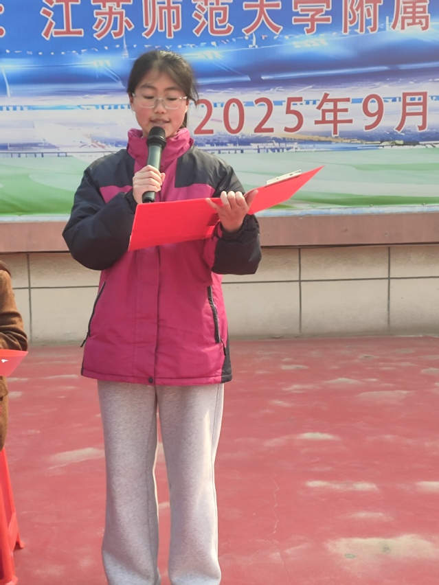 闵亚东校长发表新学期致辞,以春日希冀寄语师生,肯定过往佳绩的同时,为新学期的成长与发展指明方向,殷切嘱托让在场师生倍受鼓舞。九年级学生代表季文艳登台发言,字字铿锵尽显少年凌云之志;家委会主任章彬带来暖心寄语,传递家校同心、护航成长的坚定信念,声声期许,汇聚成前行的温暖力量。