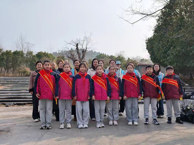 在党员老师的带领下,学生们前往大洞山开展垃圾清理活动。大家分工合作,手持垃圾袋,认真捡拾路边及树林中的垃圾,用实际行动守护自然环境。活动中,党员老师以身作则,为学生树立了榜样。