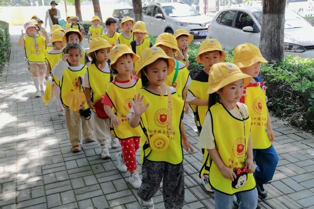 活动当天,孩子们背着小书包,带着提前绘制好的购物清单,排着整齐的队伍,在园长、老师和保安爷爷的守护下,兴高采烈的徒步走向超市。