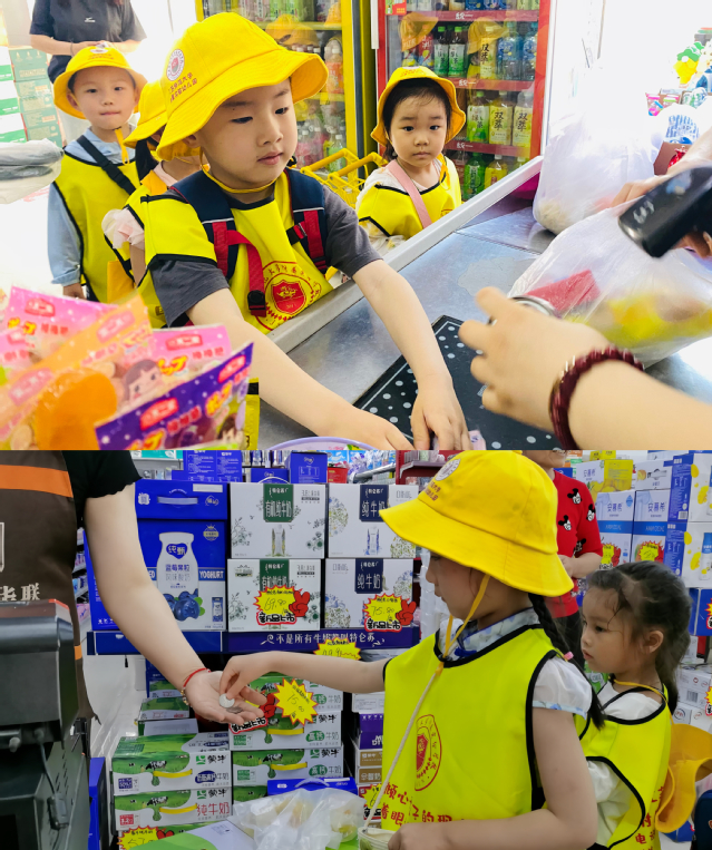超市里的商品太吸引人了,孩子们不仅要决定挑选什么合适的商品,还要算好购买商品的总额不超20元。在老师的引导下,孩子们按照自己的购物清单,合理分配,购买自己所需物品。为家里买生活用品;为自己买文具、买零食;为妈妈买调味品、买蔬菜;为弟弟妹妹买水果......每个孩子都在活动中表现出了不同的消费动态,小家伙们忙得不亦乐乎,体验着自主购物、当家做主的乐趣。