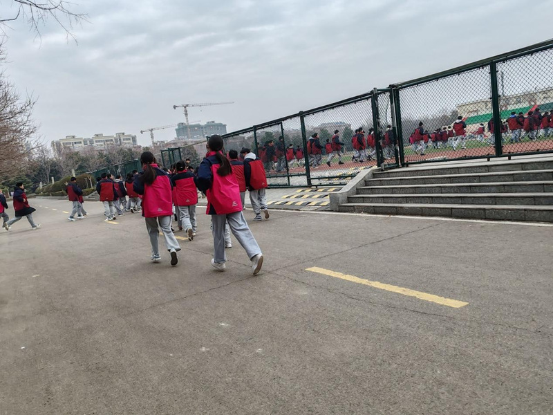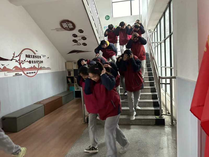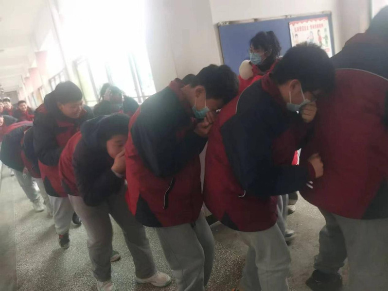 当天上午紧急疏散命令一经下达,各班主任老师迅速到达各班协助上课老师一起组织学生疏散,其他老师们也在第一时间赶到自己当时所在楼层拐角处配合疏散学生。各班学生在老师们的指挥下,弯着腰,猫着步,用手帕、衣袖等捂住口鼻,沿着学校指定楼梯口快速前进,有序撤离到学校操场的安全地带。随后,各班班主任清点人数,并层层上报,短短几分钟,初中部4000余名师生全部安全疏散撤离。