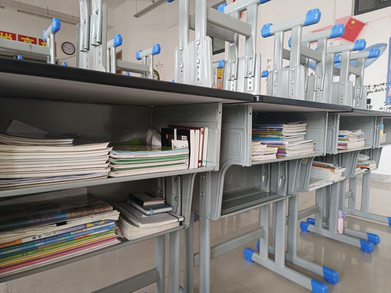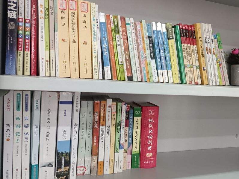 走进教室,同学们的书桌上零零散散的摆放着各式各样的书籍,阳光洒落在书籍上,留下一圈圈光晕。