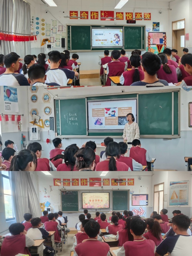 “献礼母亲节”班会课上,同学们认真聆听母亲节的由来,主动分享自己和母亲相处时的点点滴滴,并且互相出谋划策,送给母亲小惊喜。