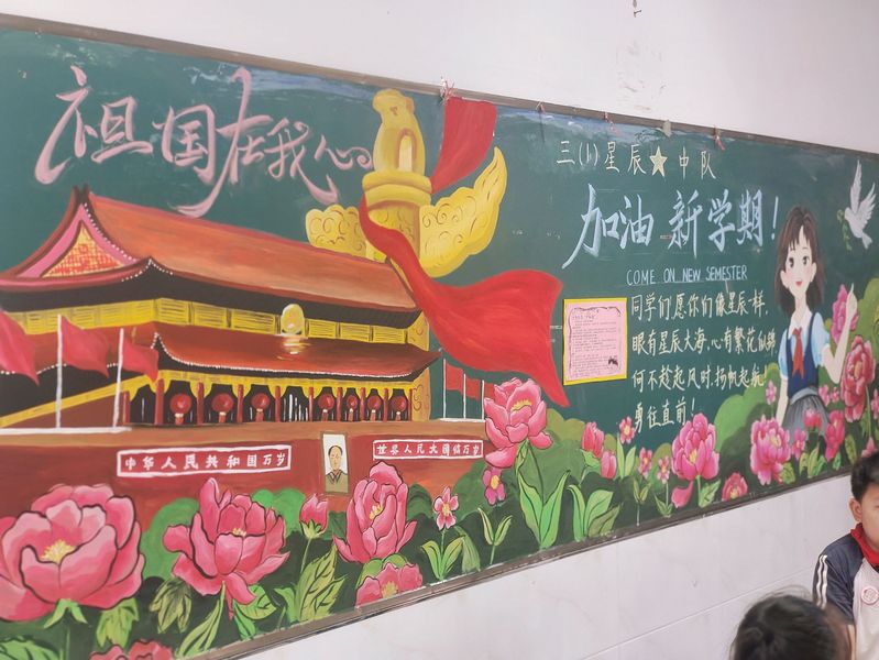 教室里,从充满创意的黑板报到陈列有序的图书角,从彰显班级特色的口号到彰显着爱国主义教育的墙报,每一处细节都体现着同学们对新学期的期待和对祖国的热爱。