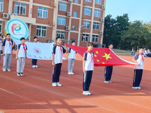 9月29日上午8点,运动会开幕式在庄严的运动员进行曲中正式拉开序幕。国旗队、彩旗队、各班级代表队和各年级组展示队依次入场,步伐整齐,气势昂扬。学生们用铿锵有力的步伐和热情洋溢的笑容,展现了新时代青少年的朝气与风貌。