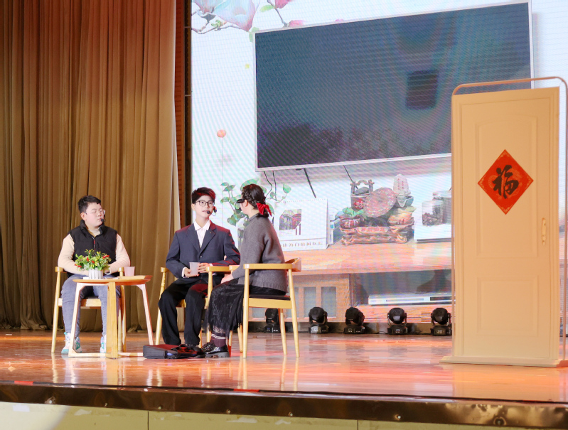 初中部项依娜、张光远等同学带来情景剧表演《心锁》,他们透过生动活泼的演绎,展现出家校共育中的感人画卷。
