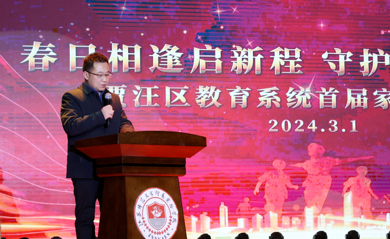 随后,贾汪区教育局党委委员阚东海在活动中讲话,阚局长阐述了举办家长节的目的与意义,为各学校今后在家校共育方面应做的努力指明了方向,同时也向广大家长发出倡议,家校携手共同营造温馨和谐的育人环境。