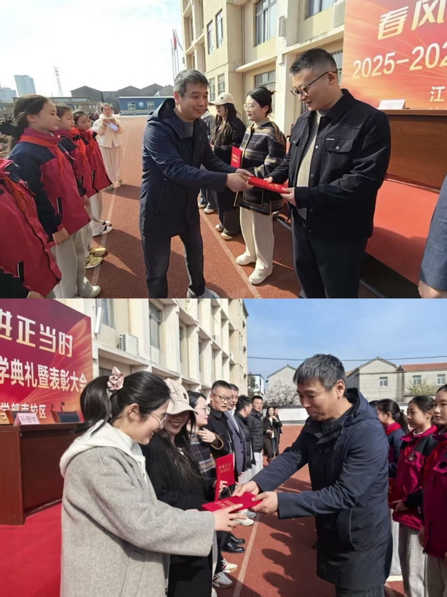 张芷薇处长宣读“优秀班主任”名单。吴长友校长、郭东副校长为获奖教师颁奖表彰他们在班级中倾注真情,用陪伴与担当点亮每一颗童心。